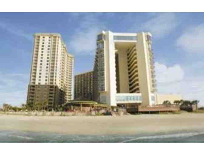 This package includes 2-nights stay at the Hilton Myrtle Beach Resort, 4 general admissions to Myrtle Waves Water Park, and 2 vouchers for admission to the Alabama Theater in Myrtle Beach, SC.