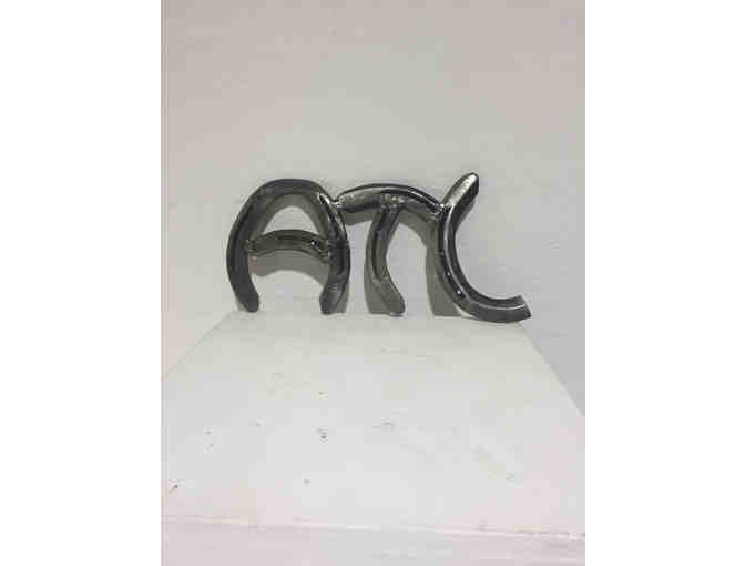 Tom McGowan is a local artist, working in steel, using reclaimed railroad iron, well-worn horseshoes and industrial odds and ends.