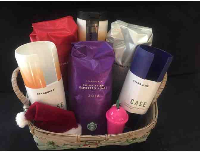 Enjoy the Holiday Season with this festive basket filled with 3lbs. of Starbucks Holiday coffees, 1 Tumbler with 2 interchangeable cases, 1 Starbucks Ornament & a festive hat.