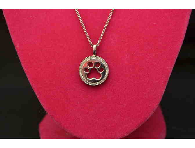 An 18" diamond pawprint necklace with 1/10 ct tw roud-cut made from sterling silver.