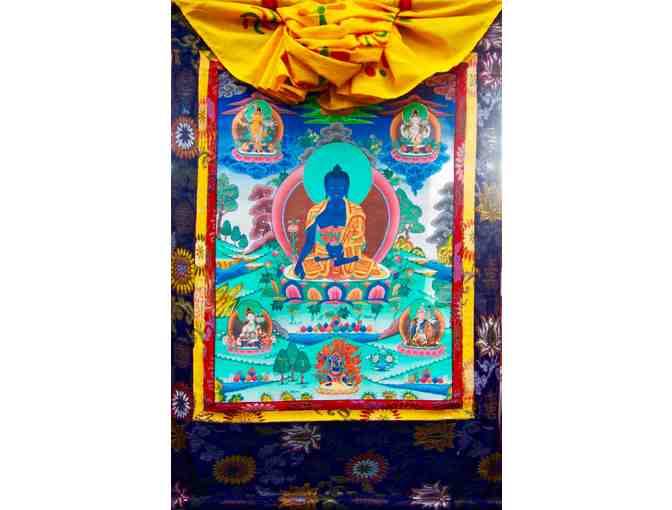 This is a very high quality Medicine Buddha thangka, suitable for devotional practice in your shrine room, or as a distinctive decorator piece in any living space. Many people in the healing professions will have a Medicine Buddha thangka or statue in their reception area or office.
