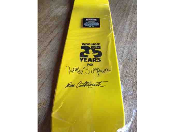 TREEHOUSE OF TERROR 25TH ANNIVERSARY SPECIAL EDITION SKATEBOARD DECK! Super rare skateboard deck autographed by Dan Castellaneta, who plays the voice of Homer Simpson on the show. This skateboard deck was given out to cast and crew at the premiere of the 25th anniversary special and was never offered for retail sale. The back is fully illustrated with some of the greatest moments from the first 25 seasons. It's unused but the plastic wrap was opened to sign the skateboard. There are no wheels included. The deck can be used to skate or mounted for display. Dimensions are 8" by 32."