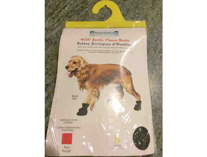 Size S (10-12") black fleece boots with non skid soles and velcro straps
