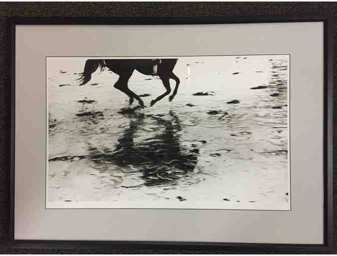 Horse galloping reflection on wet track framed photo by Jon Kral