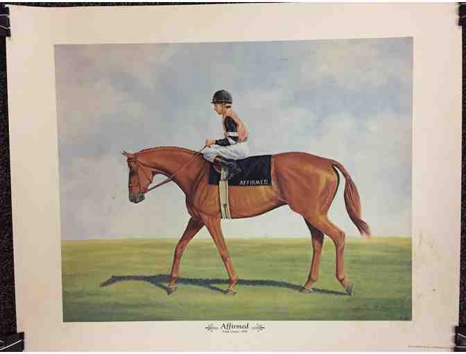 Unframed painting by JacqueLin Peiffer of Affirmed the 1978 Triple Crown Winner. 1984 © Published by M.B. Glass & Assoc. of Old Wesbury, NY
