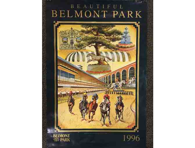 ’96 Poster of Belmont Park With Secretariat in the Center. The Poster is Based on an Original Oil Painting by Beverley E. Bryant. Includes the Original Signatures of the Jockeys and of Bryant.