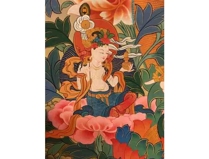 This is a special opportunity to buy something not only beautiful to enhance your practice, but with the special meaning due to its connection with the blessings of Lama Tharchin Rinpoche and his first group of Drupdra practitioners. It was purchased from a Tibetan lama in 1997, and was also blessed by Ayang Rinpoche, Garchen Rinpoche, and many other lamas.