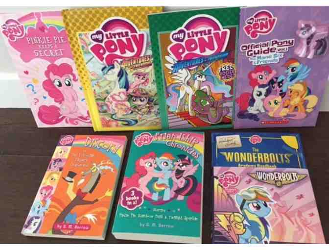 A wonderful variety of stories brought to you by the magical world of My Little Pony. Assortment includes the following seven books: -My Little Pony: Friendship Chronicles (3 books in 1) -Discord and the Ponyville Players Dramarama -The Wonderbolt Academy Handbook (hardcover) -My Little Pony Official Pony Guide Volume 1 -Pinkie Pie Keeps a Secret -My Little Pony: Adventures in Friendship -My Little Pony: Adventures in Friendship 5