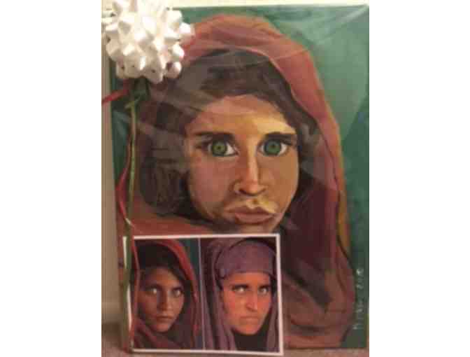 Canvas Oil Painting of " Afghan Refugee Girl" with NY Times Article