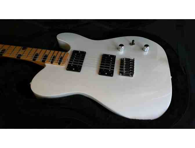 This exquisite instrument was custom made for a special GITC donor and advocate who generously gave it to GITC to support our free music programs in the schools. A pearl-white tele with double humbuckers is so much fun our lead electric teacher who did the intake couldn't put it down! It's as much of a player as a looker and will enhance any living space while it waits to be picked up. The finger-drop ebony inlays at the frets give it a warm, modern touch.