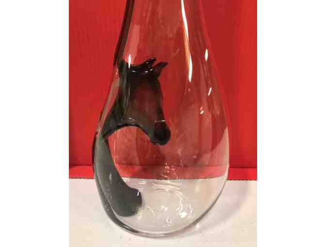 This stunning and sophisticated mouth-blown lead decanters is debuted in 2014 the Year of the Horse in the Chinese Zodiac. The decanter shows an equine profile decorating its interior. The decanters concave profile also aids in wines decanting process. After pouring wine into the decanter, gently shaking the vessel until a thin layer of bubbles forms, this helps to oxygenate the wine, dramatically improving its aeration and the flavor profile of the given grape varietal.
