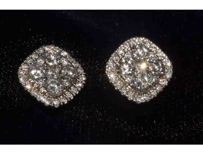 14k white gold diamond cluster earrings, containing 62 round diamonds weighing a total of 1.00ct. Measures 1/3" square.