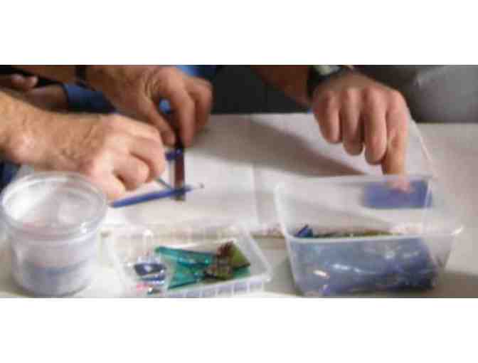 You and three friends will spend an enjoyable 2-3 hours together while letting your creativity flow during this fused glass class. You will make a fused frit flower pieceand enjoy wine, cheese and crackers while you work.