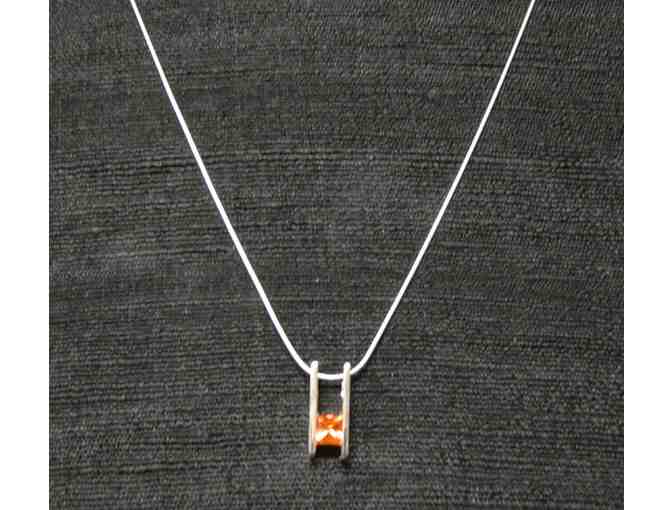 Silver pendant and chain with 1 carat brilliant orange colored gemstone from jewelry designer Russ Ferrell