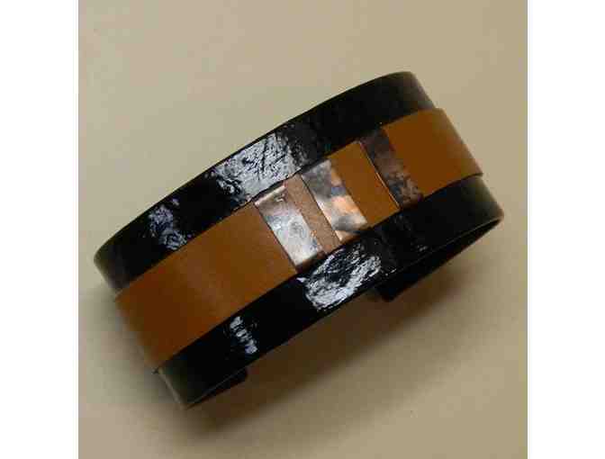 Black cuff with tan leather and copper from local artist Kathryn Negaard