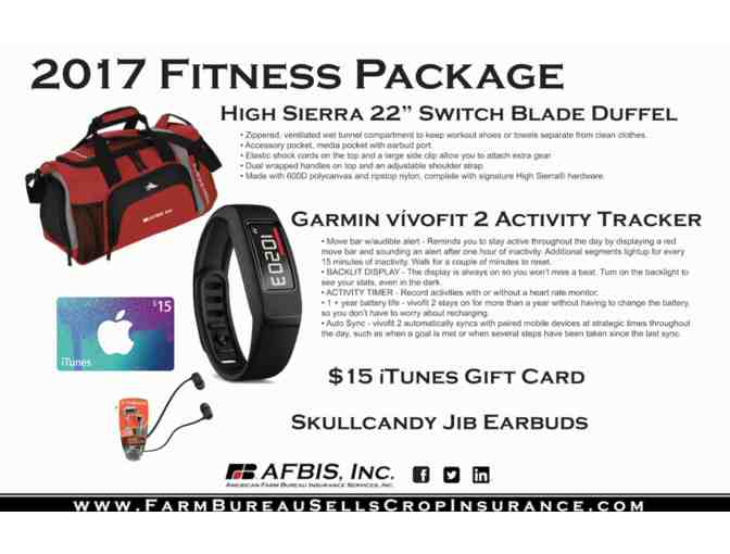 2017 Fitness Package: High Sierra 22" Switch Blade Duffel, Garmin vivofit 2 Activity Tracker, $15 iTunes Gift Card, Skullcandy Jib Earbuds