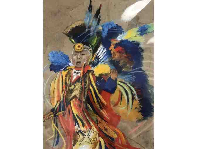 Painted by Faribault artist Linda VanLear, this is a print of "Native American Boy Dancing" that measures 11" wide x 15" high. The original painting was adapted into a multi media work that hangs in the Media Center on South Central College's Faribault Campus. Unframed.