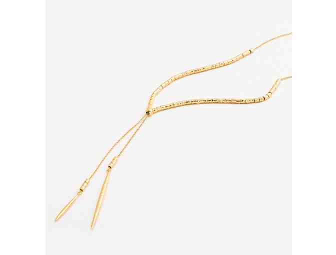 Bring a touch of scintillation to your neckline with Gorjana's oh-so-delicate lariat necklace. Dainty beads and hammered pendants elevate this bohemian style.