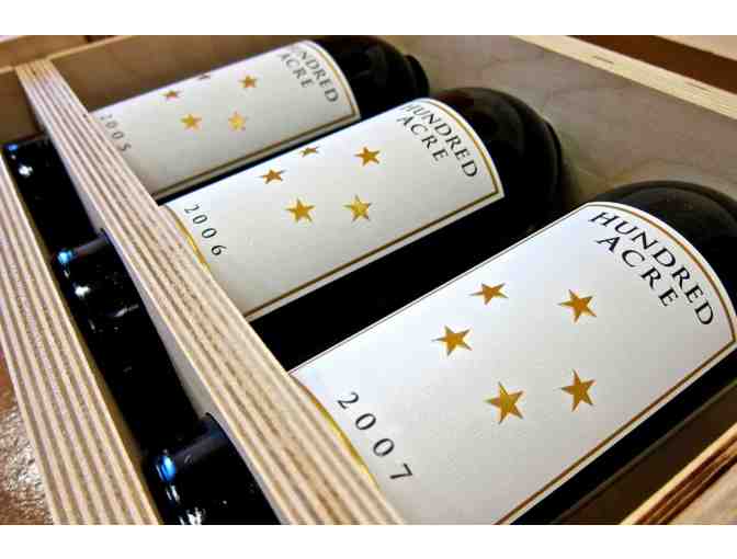 Enjoy this special edition mini vertical of our Hundred Acre Cabernet. Includes a bottle of our 2006, 2008 and 2007 vintage cabernet that received a perfect 100 pt rating from Robert Parker.