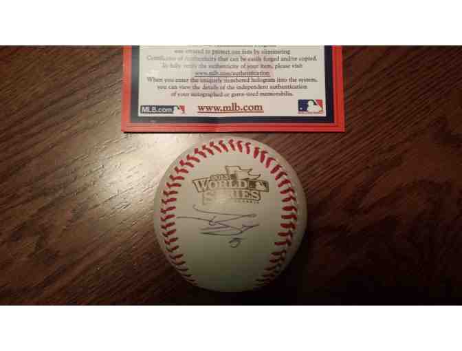 2013 Boston Red Sox World Series Champions. Autographed 2013 World Series Baseball by Jonny Gomes in its own Case with Certificate of Authenticity. This is a once in a lifetime chance to own a piece of Boston Red Sox MLB History.