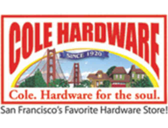 Valid at all Cole Hardware locations. No expiration. Not valid on SFMTA meter cards, Clipper cards, MUNI passes, or USPS stamps.