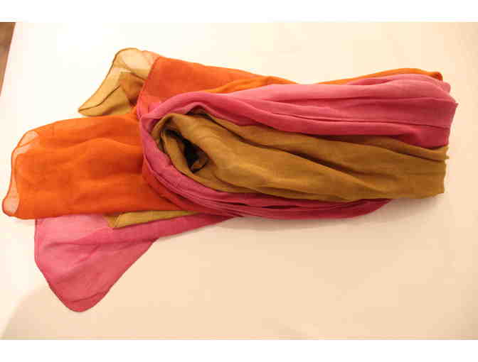 Gorgeous, pink-green-orange-red ombre scarf, 100% viscose measuring over 36" x 48" from Madrid, Spain