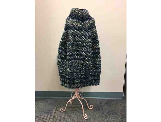 Bid to win a beautiful hand knit shawl of shades of greens, grey and black by Scarves of Love!