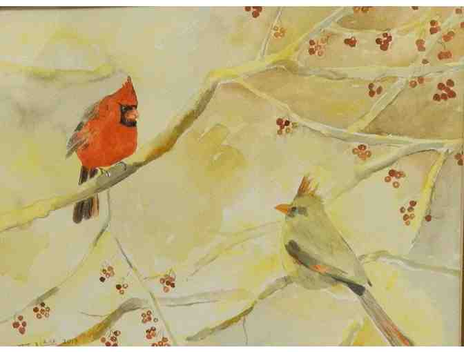 "Cardinal Pair" original framed 12x18" watercolor by local Wisconsin artist Helen Vater Blaha