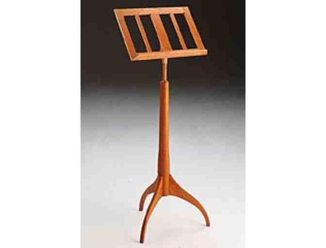 Shaker style, made of solid clear Pennsylvania cherry with a hand-rubbed oil finish. Height adjusts from 41" to 54" and the tilt of the music rest adjusts to 3 different angles.