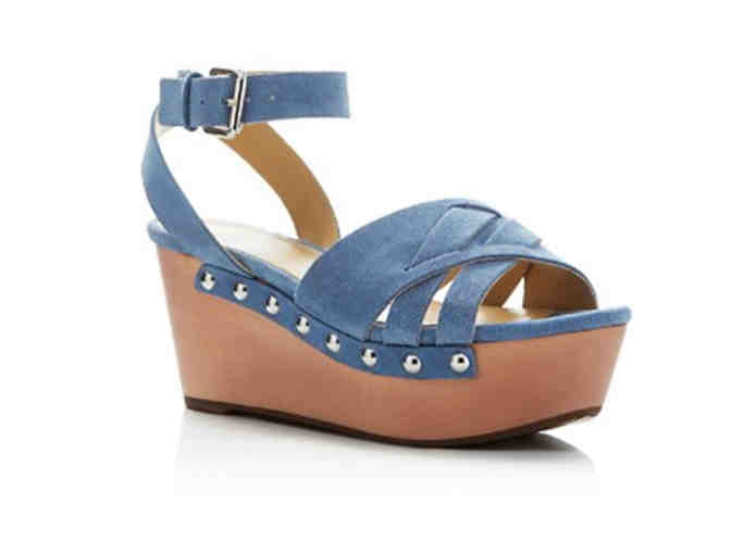 Marc Fisher LTD’s wooden wedge sandals instantly elevate your look with a retro-cool boost, complete with gleaming studs and woven suede detail. Let’s not forget to mention the baby blue color. This is the perfect pop to your vacation outfit somewhere warm and sunny!