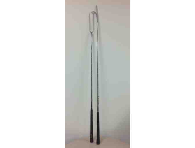 A great example of repurposing! This fire poker and hotdog/marshmallow roaster used to be golf clubs! Nice long handles keep you clear of the fire and comfortable grips make the wait more bearable. Measurements: 40" and 43" from tip to tip. Includes 18 fire starters.