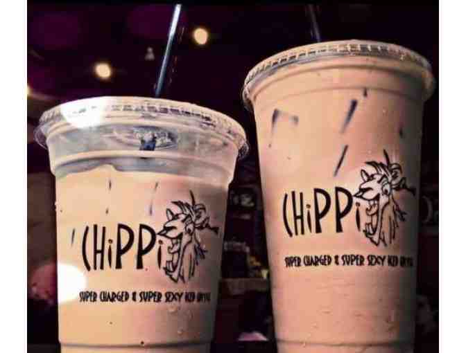 Bid to win a $50 gift card, a hot travel mug, a CHiPPi travel mug, 11 pounds of coffee, 2 ceramic cups and 2 beverage coozies.
