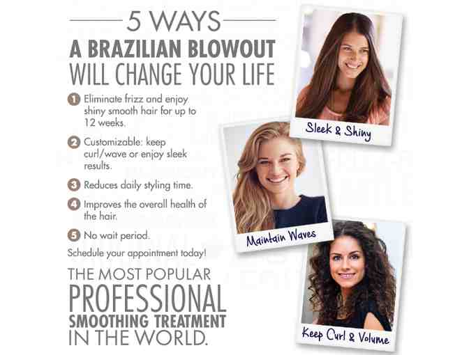 Brazilian Blowout professional smoothing treatments are the most innovative and effective in the world. Through the use of breakthrough bonding technologies, these customizable smoothing treatments actually improve the condition of the hair by creating a protective protein layer around the hair shaft to eliminate frizz and smooth the cuticle. The end result is smooth, frizz-free hair with radiant shine! WHAT MAKES OUR SMOOTHING TREATMENT DIFFERENT? Customizable- keep curls and lose frizz or achieve the smoothest result possible. No Down Time -leave salon and immediately wash hair, exercise, put hair in a stylish pony tail or clip without worry. Great for All Hair Types - curly, kinky, coily, frizzy, fine, damaged or coarse, we've got you covered. No Change to Curl Pattern - after about 12 weeks, natural curl pattern returns. No Line of Demarcation with New Hair Growth - great for transitioning from Japanese straighteners, relaxers or other keratin treatments. Treatment is Finished at Salon, you leave with smooth, frizz-free hair for up to 12 weeks.