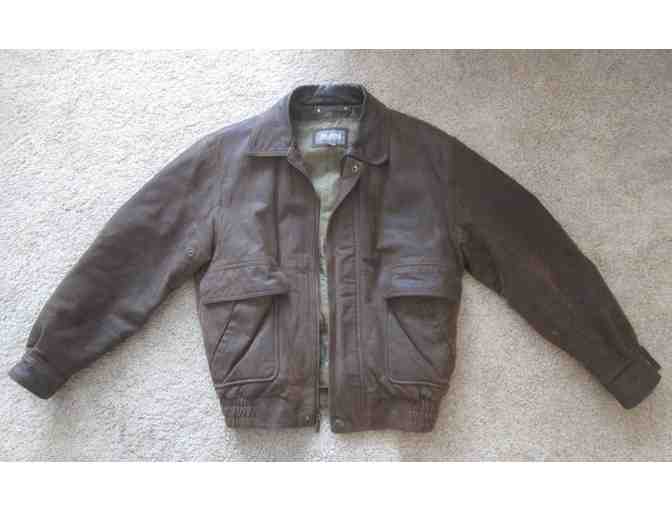 Vintage Wilson Leather Bomber Jacket with metal zipper and snap cuffs. Burnished leather in good shape except small hole under back of collar. Dark brown. Men's size small.