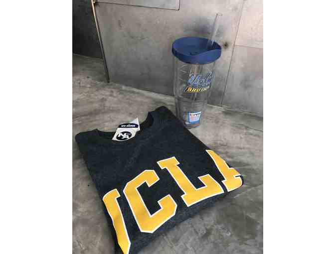 Support your team at the next game with a 24oz UCLA Tervis hot & cold tumbler along with a dark grey Official Collegiate Large T-shirt with Bruin Yellow logo.