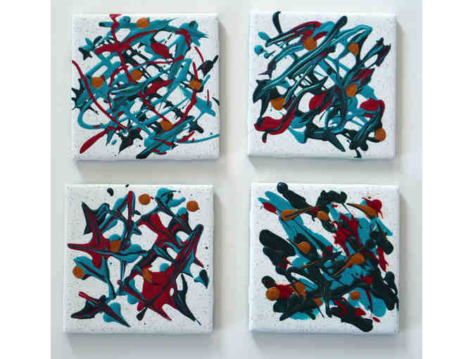 Set of four hand painted original tiles by artist Maja Shaw. Can be used as coasters, trivets, decor, etc.