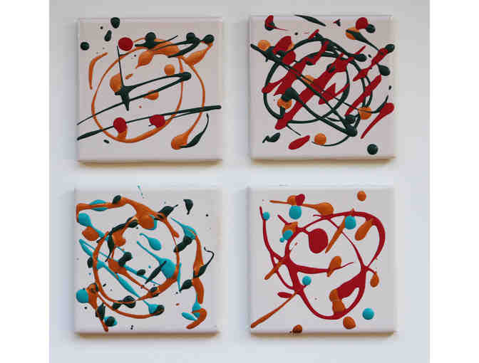 Set of four hand painted original tiles by artist Maja Shaw. Can be used as coasters, trivets, decor, etc.