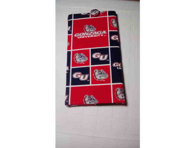 Handmade Seattle Seahawks glasses case. Could be used for sungalsses, eyeglasses, or small phone. Size 3.75"W x 7.5"H with a button and elastic loop closure at the top.