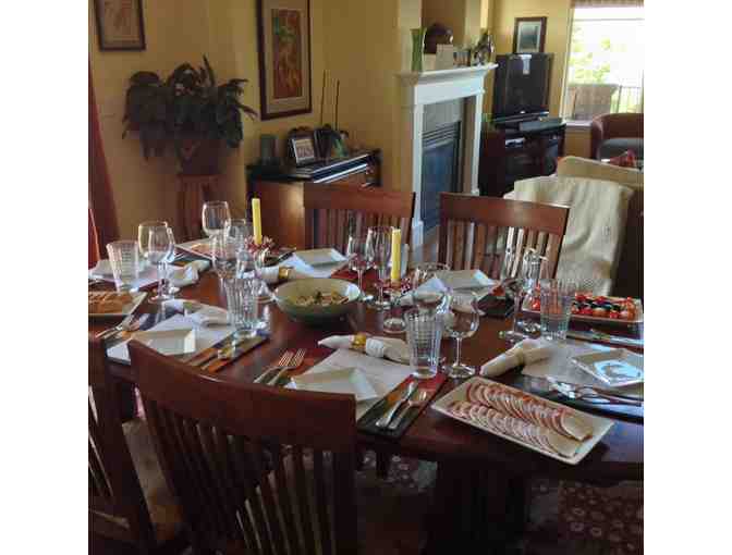 Five course homemade Italian dinner for eight, in your home, featuring a homemade pasta course and delectable cheesecake. Wine pairings provided by Smasne Cellars. We will meet with you to determine the best date for all and to set the menu. Sample menus will be provided, but the choices are yours.