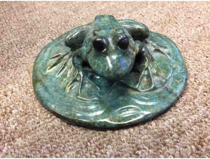 Perfect for that empty spot in your home, this happy little frog sits on his lillypad.
