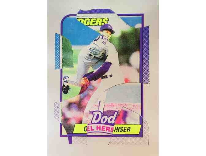 This original print is based on a wood print of a 1989 Topps Orel Hershiser baseball card. A tremendous collectors item for any Dodgers fan out there.