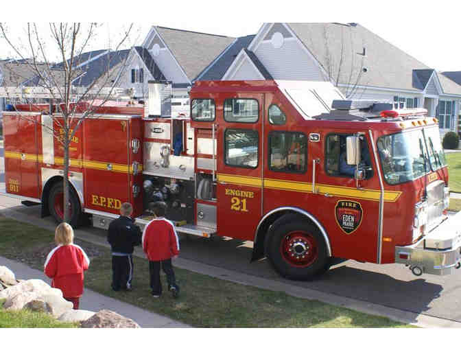The ride of a lifetime! This certificate entitles the holder and two friends to take a ride on an Eden Prairie fire truck from a house in Eden Prairie to your Eden Prairie school. Limited to Eden Prairie residents attending Eden Prairie schools.