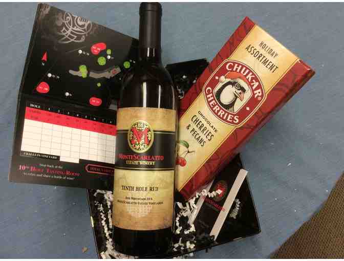 Enjoy golf for four at MonteScarlatto's Par 3 course followed by a complimentary wine tasting at the 10th hole and a bottle of Tenth Hole Red Blend. Complimentary box of Chukar Cherries. Even if you're over par on the course, this item is a hole-in-one!