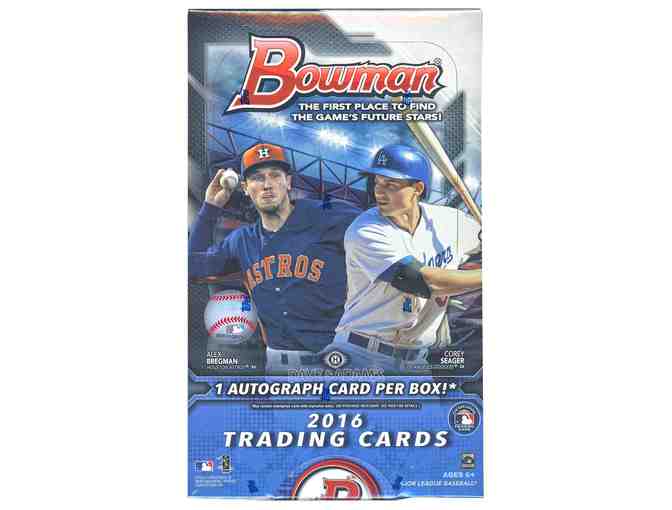 Bowman Baseball is back in 2016 with an array of new product content showcasing the game's biggest prospects and 2016 rookies. Each Box contains One Autograph Card! New to 2016 Bowman Baseball: Shimmer Variation Chrome Refractors: 2016 Bowman will feature additional low-numbered refractors as part of its Chrome Prospect and Chrome Prospect Autograph subsets. International Ink Insert/Autograph subsets: Showcasing the biggest international prospects of the summer signing window. Sophomore Standouts Autographs: Making note of the monumental 2015 rookie class by featuring low-numbered autographs of the game's biggest sophomores, including Kris Bryant, Byron Buxton, Carlos Correa and more. Look for popular returning insert sets including Rookie Recollections and Bowman Scouts' Top 100!