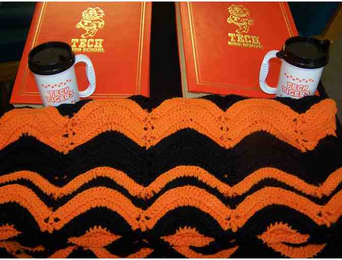 Great Idea for the Tech High School Student! A home-made afghan in Tech’s colors. Also two hard-cover scrap books for keeping those high school memories, and two “Tech Tiger” mugs.