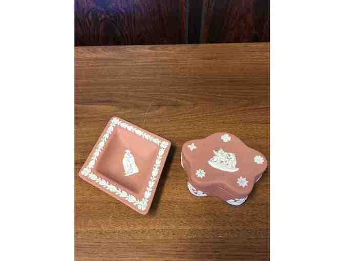 Beautiful detail on this small Wedgewood Jasperware dish and covered box.