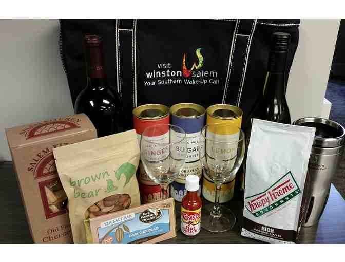 Enjoy a variety of unique treats such as Old Fashion Cheese Straws and Moravian Cookies, all while sipping a glass of Yakin Valley wine or enjoying a cup of Krispy Kreme coffee!