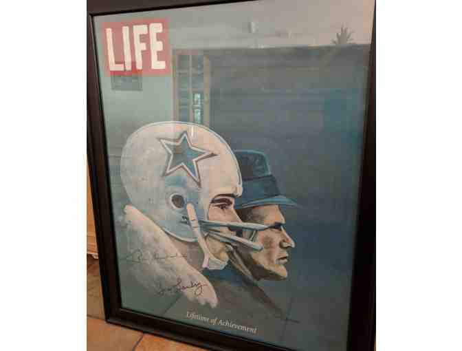 Roger Staubach & Tom Landry Autographed and Framed Lifetime of Achievement Award