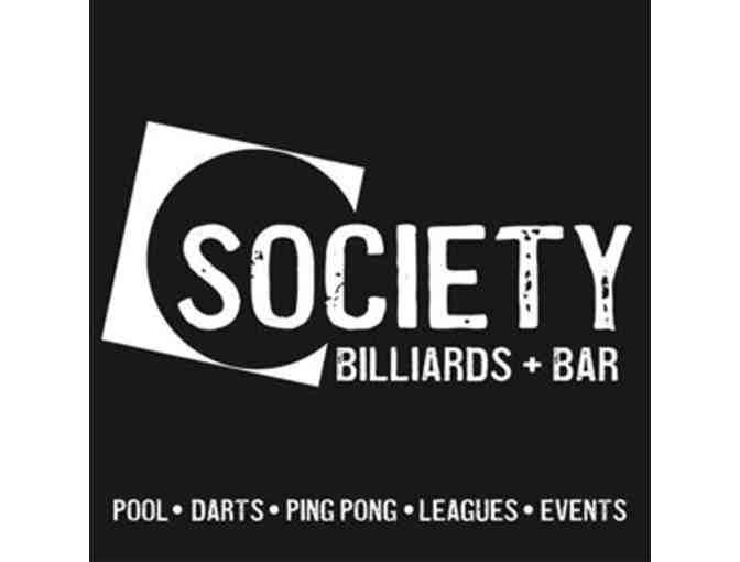 $200 gift card for services and purchases at Society Billiards and Bar.