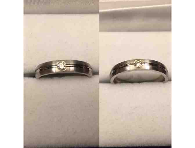 Own these beautiful set of matching white gold rings! (Size 6 and 9) The quality is impeccable! They are both: 14kt gold diamond, quality GVS1, and have an 8 point diamond in the center.